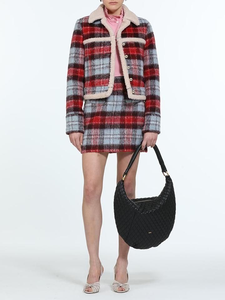 シーズンムードを高める、チェック柄とボアの絶妙なコンビネーション。