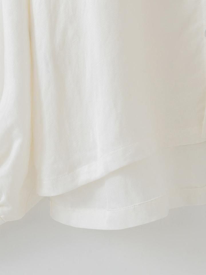 ヴィスコース特有のほどよい光沢と落ち感に、リネンならではのナチュラルな表情とハリ感が加わることで、奥行きのある風合いに仕上がっています。上質な素材感が、シンプルながらも存在感のある一枚。