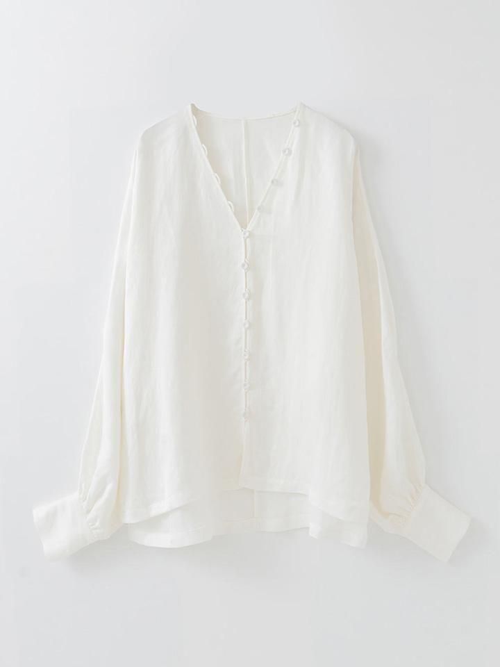 ヴィスコースとリネンをブレンドしたツイル素材で仕立てた、ボタンブラウス。