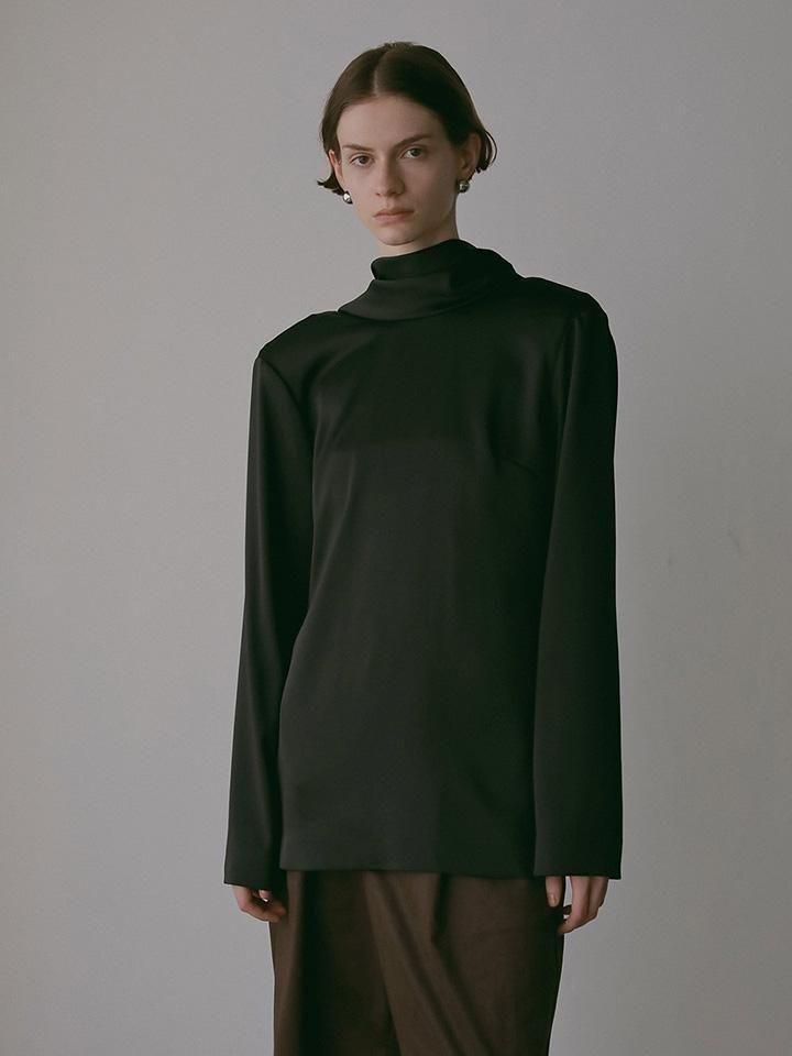 シボ感のある表情豊かなサテン素材を使用した、デザインブラウス。