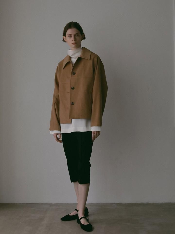 無駄のないミニマルなディテールが素材の美しさを引き立て、さっと羽織るだけで秋らしさを纏える、シーズンムード漂う主役アイテム。トレンド感と実用性を両立した、大人のワードローブに加えたい一枚です。