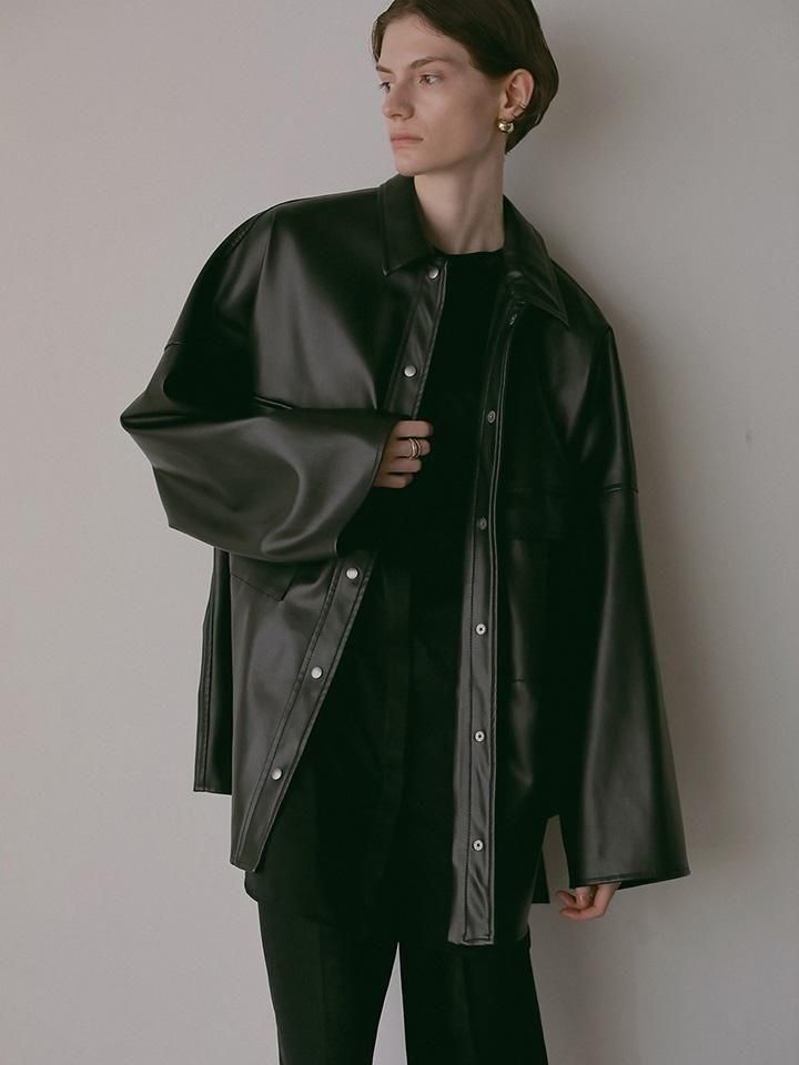 程よいツヤ感とハリのある素材が、スタイリングにクールなムードを添えてくれる一着です。