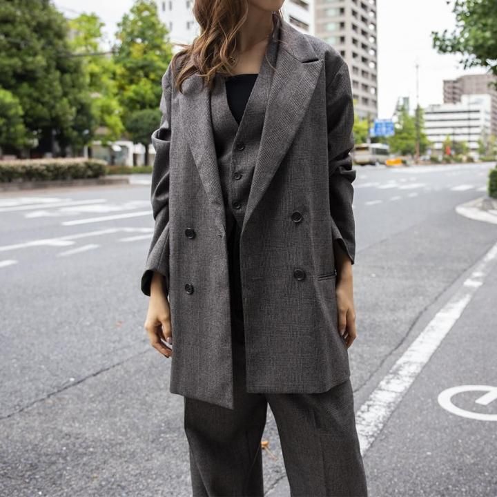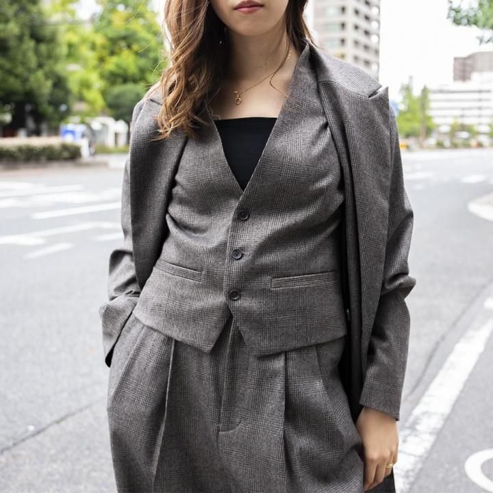 同じ素材で展開しているタックパンツ(商品ID:7053813)、ベスト(商品ID:7053713)とあわせてスタイリングしていただくのがおすすめです。